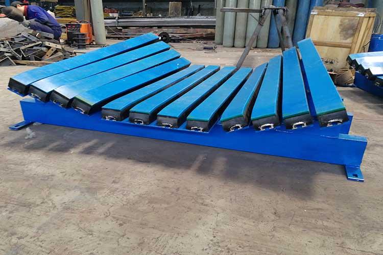 緩沖床有耐磨損和抗沖擊的能力,可靠性高為輸送機(jī)皮帶提供支撐,保證落料區(qū)緩沖床與輸送皮帶之間的面與面接觸,使得裝載物料下落過程中受力均勻,有效避免有效消除因輸送帶非均勻受力而導(dǎo)致物料飛濺及散漏情況的發(fā)生,緩沖床與導(dǎo)料槽密封群板一起使用的良好結(jié)合,能達(dá)到更好的密封防塵效果、